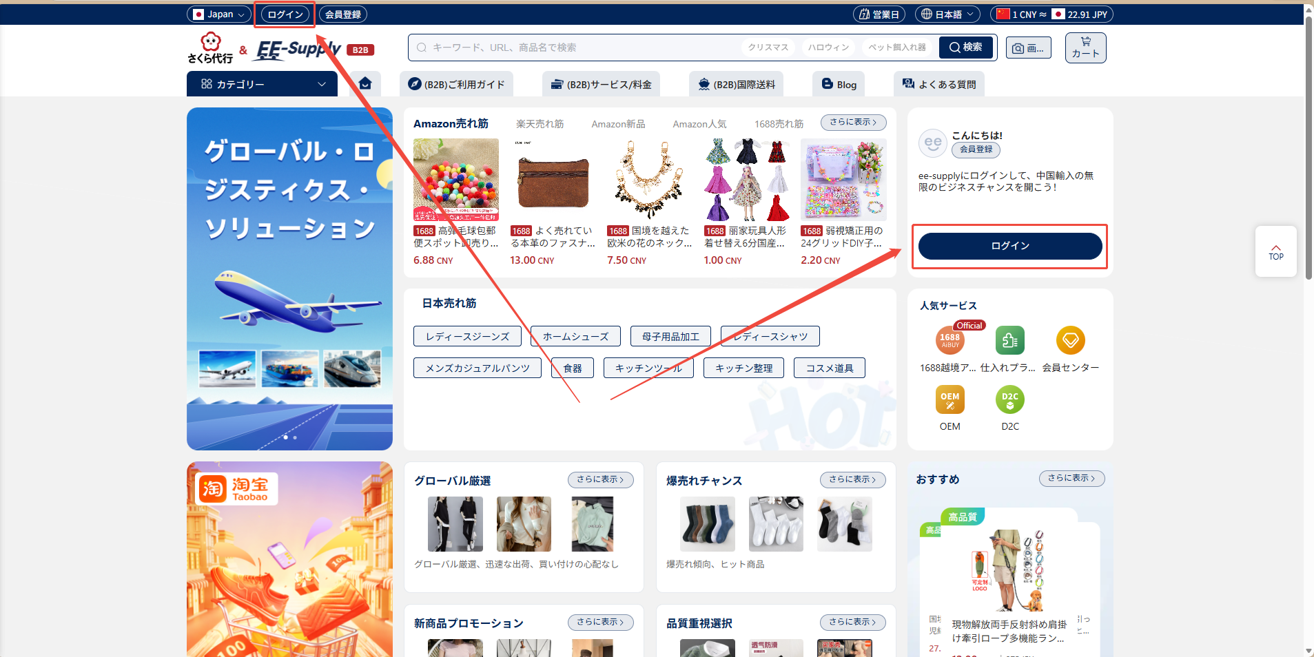 1、 ブラウザを開き、ee-supplyの公式サイト(https://ee-supply.com/)にアクセスします。